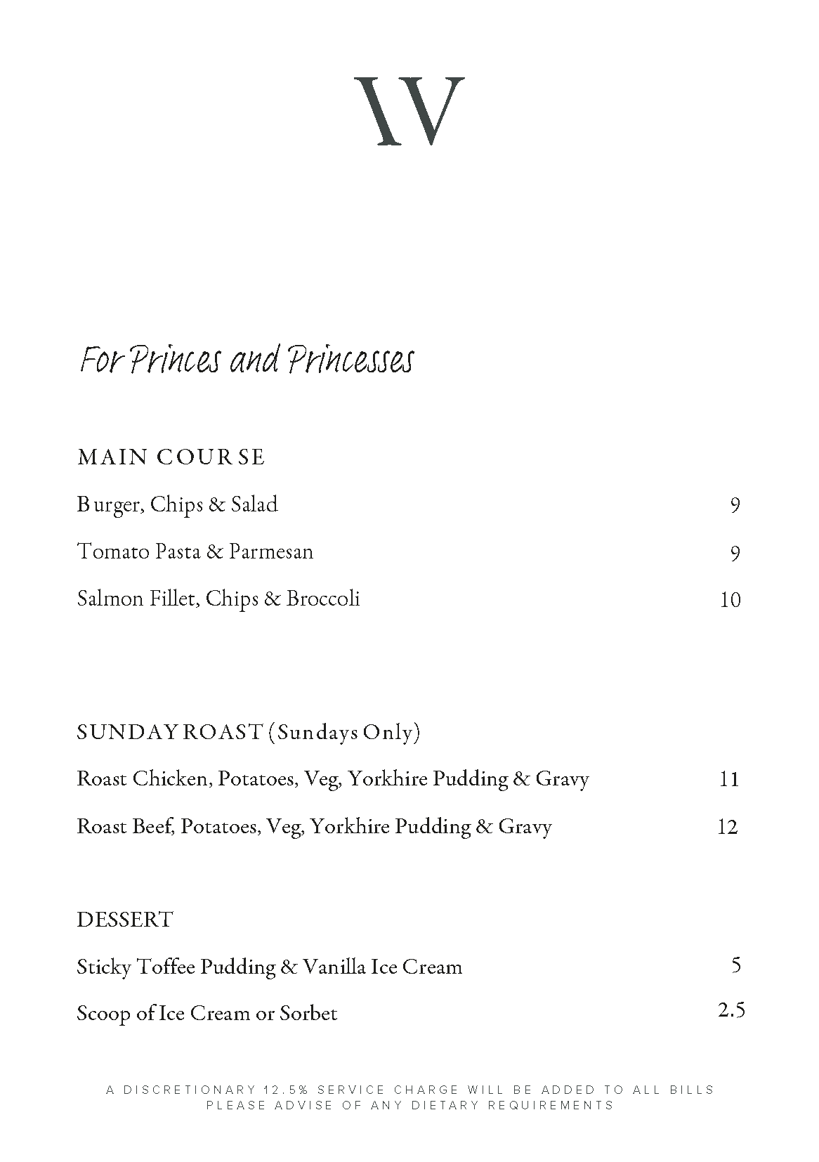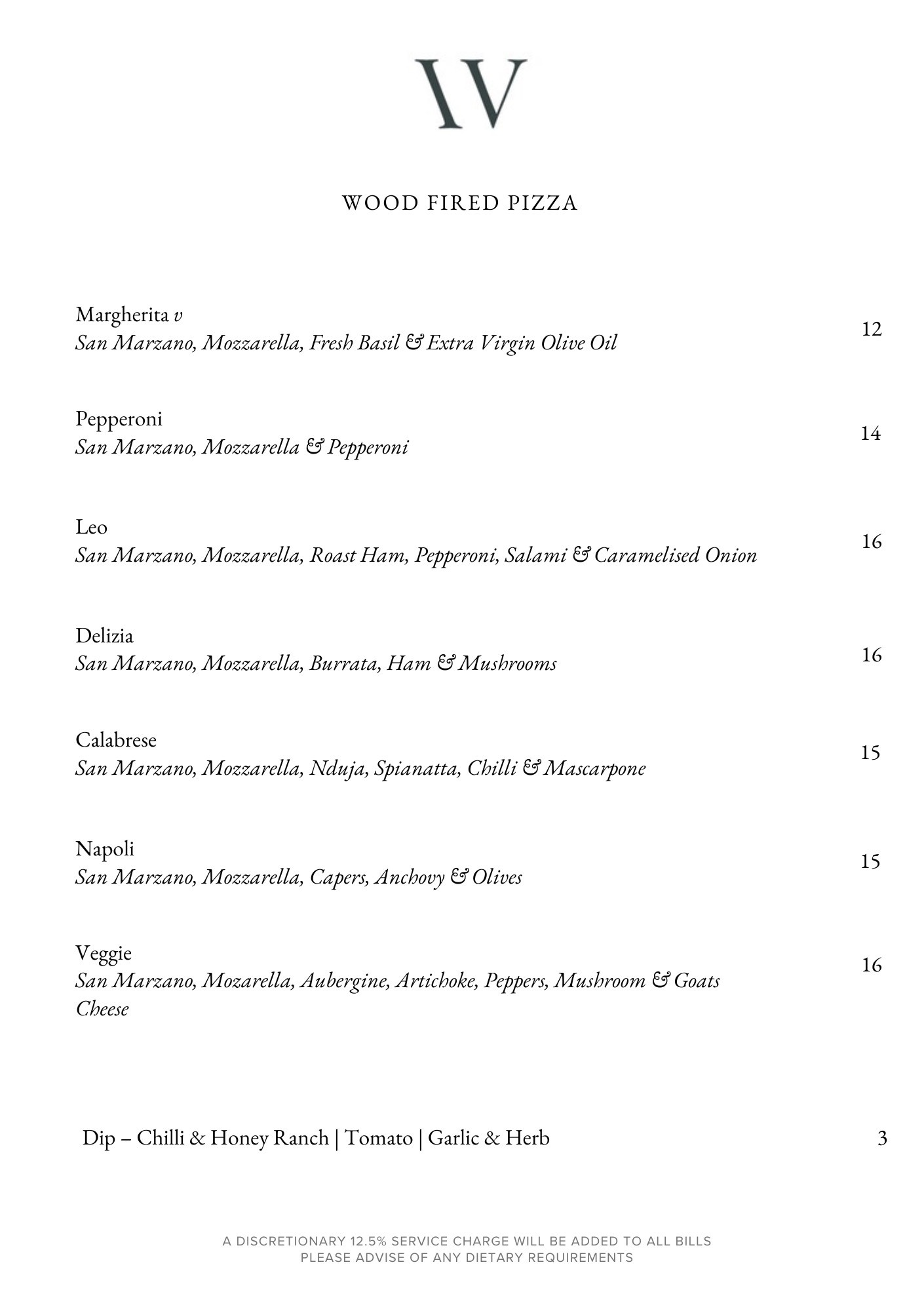 Please note our menus change regularly so this is a sample menu only.